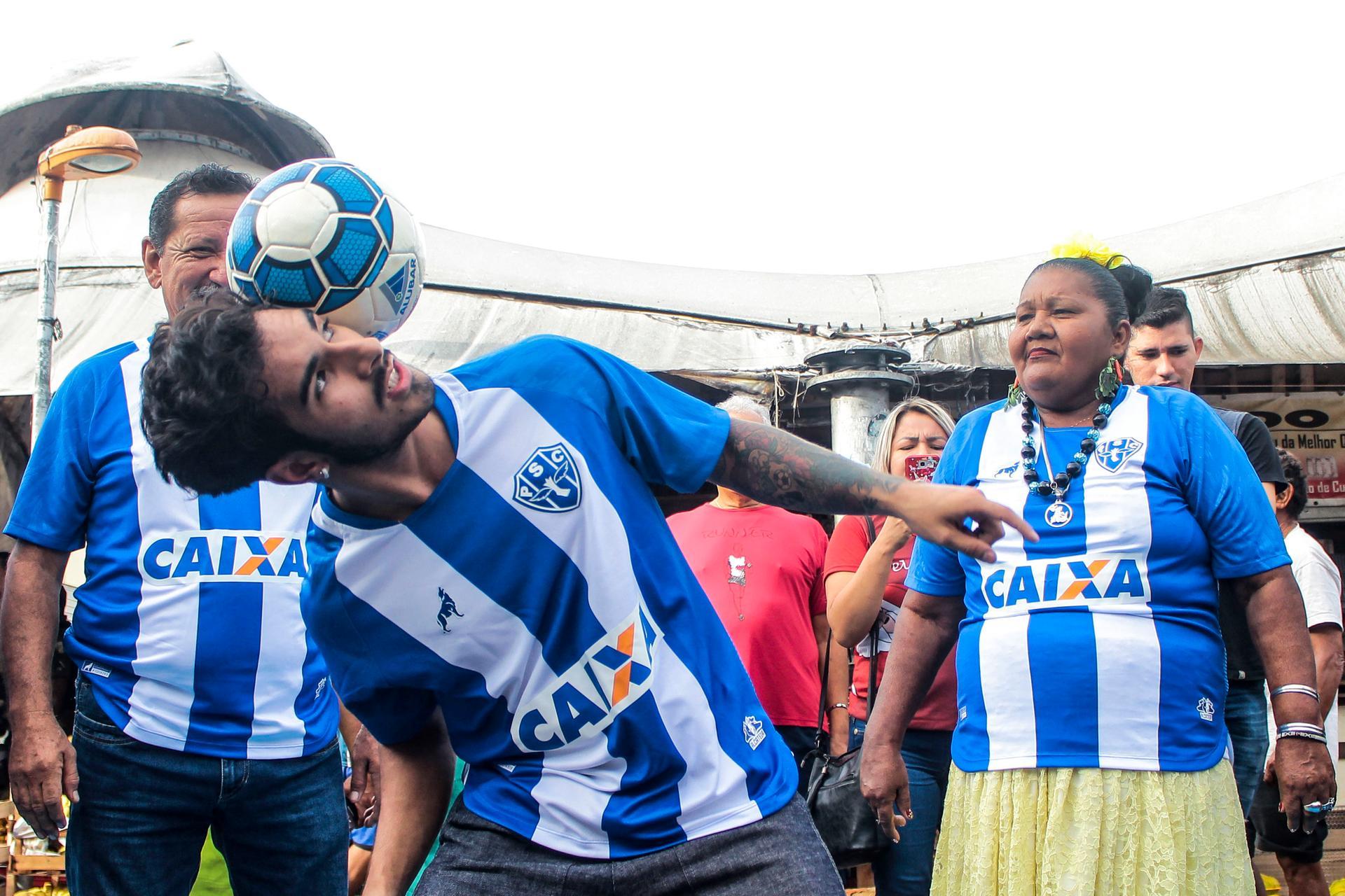 O tradicional uniforme do paysandu sport clube é composto de camisa azul e branco, com listras verticais e calções azuis.